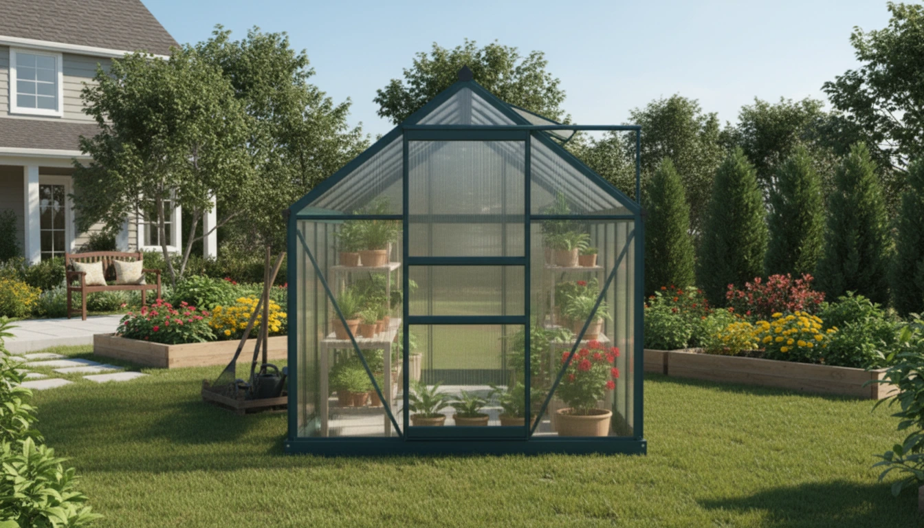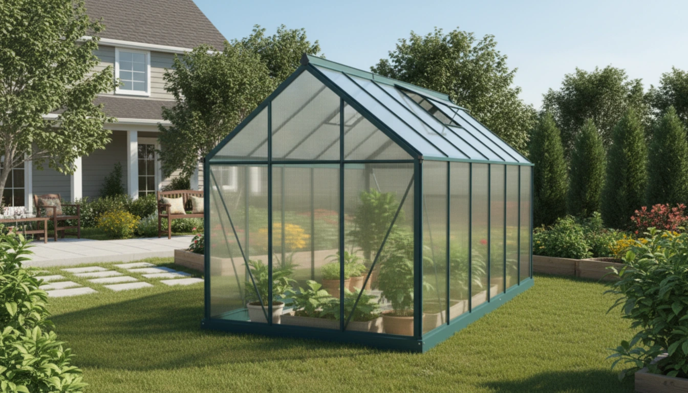 Transparent polycarbonate elevates humidity and insulates for outside conditions. Sunlight gets in, harsh UV is filtered, so plants stay protected year‑round.